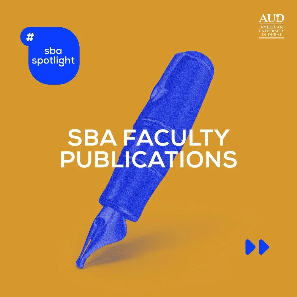 Design of a collection of digital assets for the American University in Dubai (AUD), including social posts and editorial-style graphics for student highlights, faculty publications, academic journals, and programme features, using bold colour blocking, clear typographic hierarchy, and simple illustrative elements to present academic content in an engaging and accessible way.