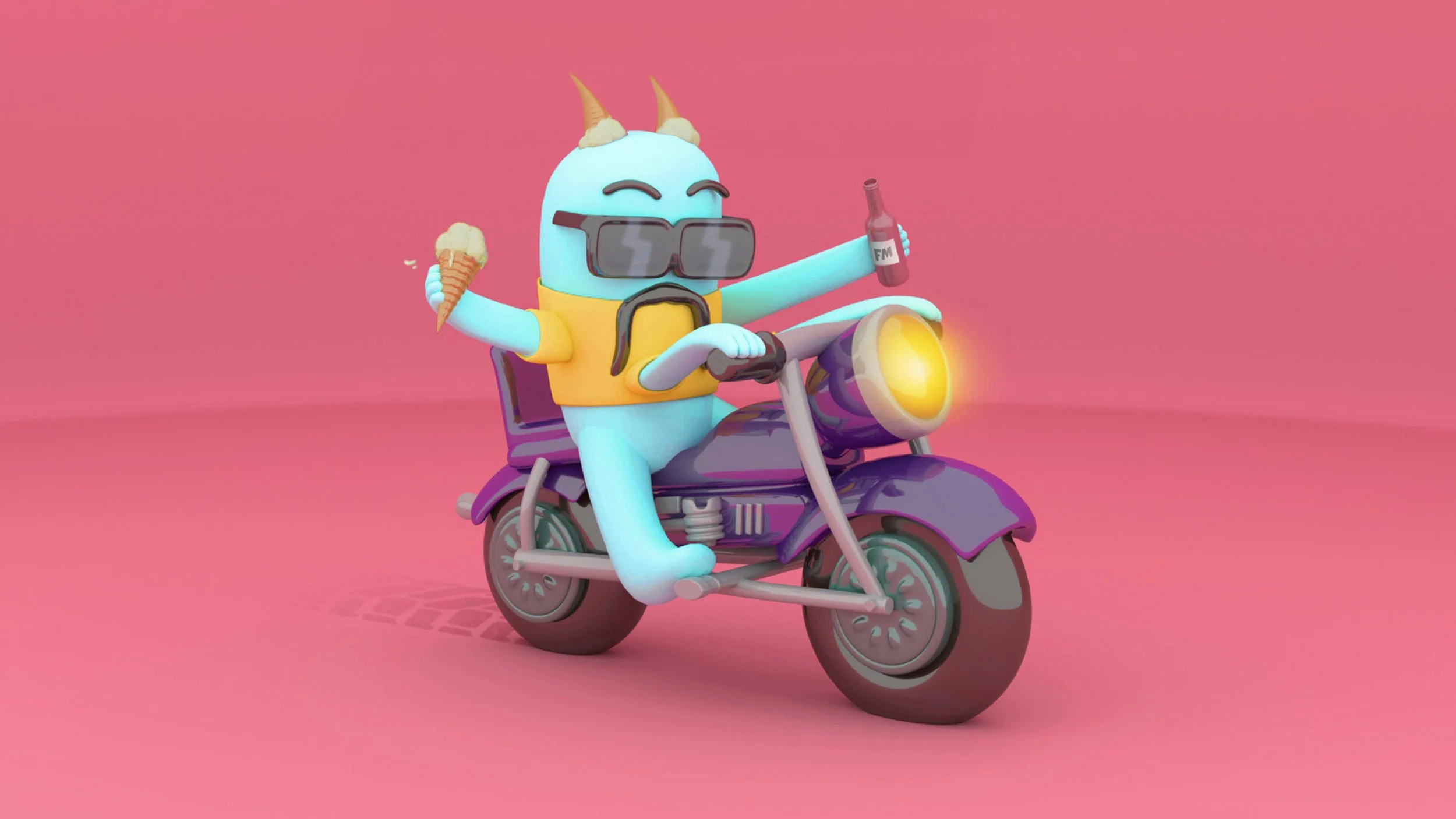 Selected elements from the full project, including 3D illustrations, logo design, and work-in-progress 3D modelling, to give insight into the development of the 3D character.
