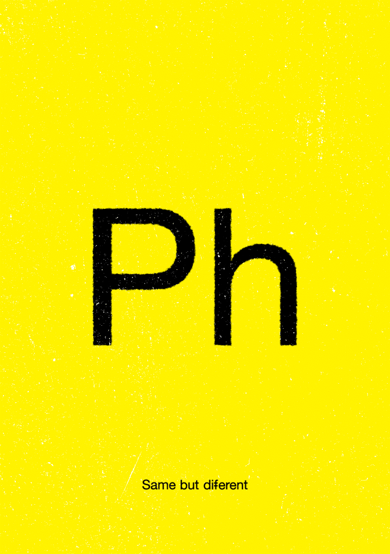 A lowercase "p" combined with "h" turns into a ligature that sounds like "f."